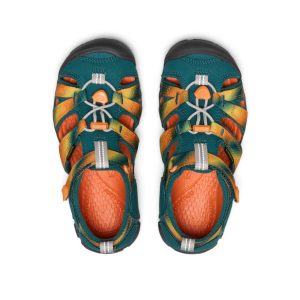 Tags: 1032164, activity:Walk>Back-to-School, activity:Water, activity:Water>Beach, activity:Water>River, activity:Water>Summer Camp, Contoured Fit, Easy-On Bungee Cinch, Eco Anti-Odor, filtercolor:green, filtercolor:misc, filtercolor:orange, gender:Kids'>Big Kids', KEEN.CNX Low-Profile Sole, KEEN.PROTECT Toe Bumper, model_number:y-seacamp-ii-cnx-ss13seay, Reflective, shoetype:Sandal, size_guide:big kids, YCRF_Footwear, YGroup_y-seacamp-ii-cnx